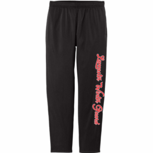 8 oz. 50/50 cotton/poly, elastic cuffs — imprinted logo left leg