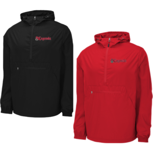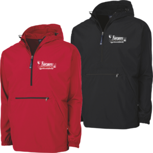 100% Softex™ polyester, wind & water-resistant, packs into its own front pouch pocket with zipper closure and self-fabric loop for easy packing on the go — embroidered logo left chest and full back