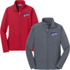 4.4 oz. 60/40 cotton/poly flannel, back yoke, brushed for softness (mens style has 2 chest pockets — ladies style has no pockets) — embroidered left chest with small buffalo