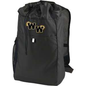 17.5″h x 12/75″w x 6.25″d 600 denier poly canvas, front zippered pocket, interior laptop pocket (12.5″h x 12.75″w – fits most 15″ laptops) in main compartment, padded shoulder straps, side mesh pocket — embroidered logo front