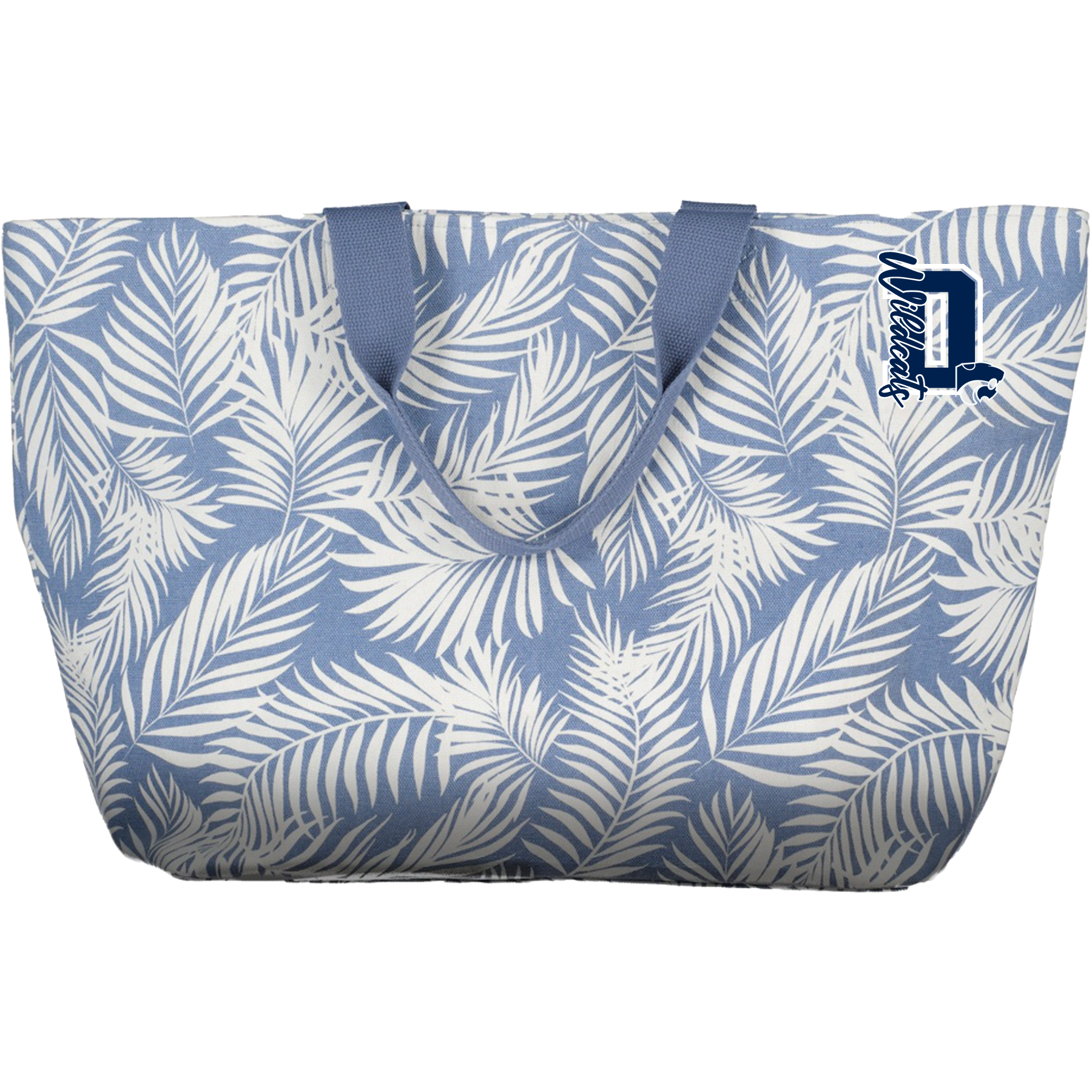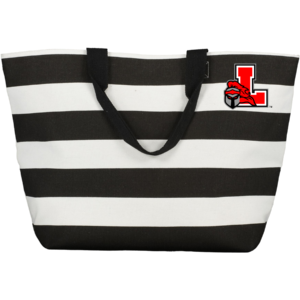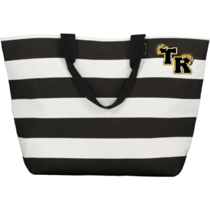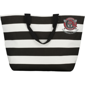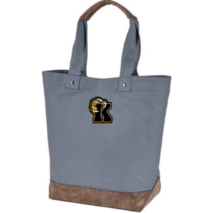 100% polyester lining, gusseted bottom, handle 8″ height by 9″ wide — embroidered logo