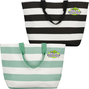 22.5″w x 15″h x 7″d, 12.0 oz. woven 70% cotton/30% polyester, magnetic snap button closure, heavy twill tape roped handle, interior cell phone pocket, second interior 6″ deep zippered pocket,