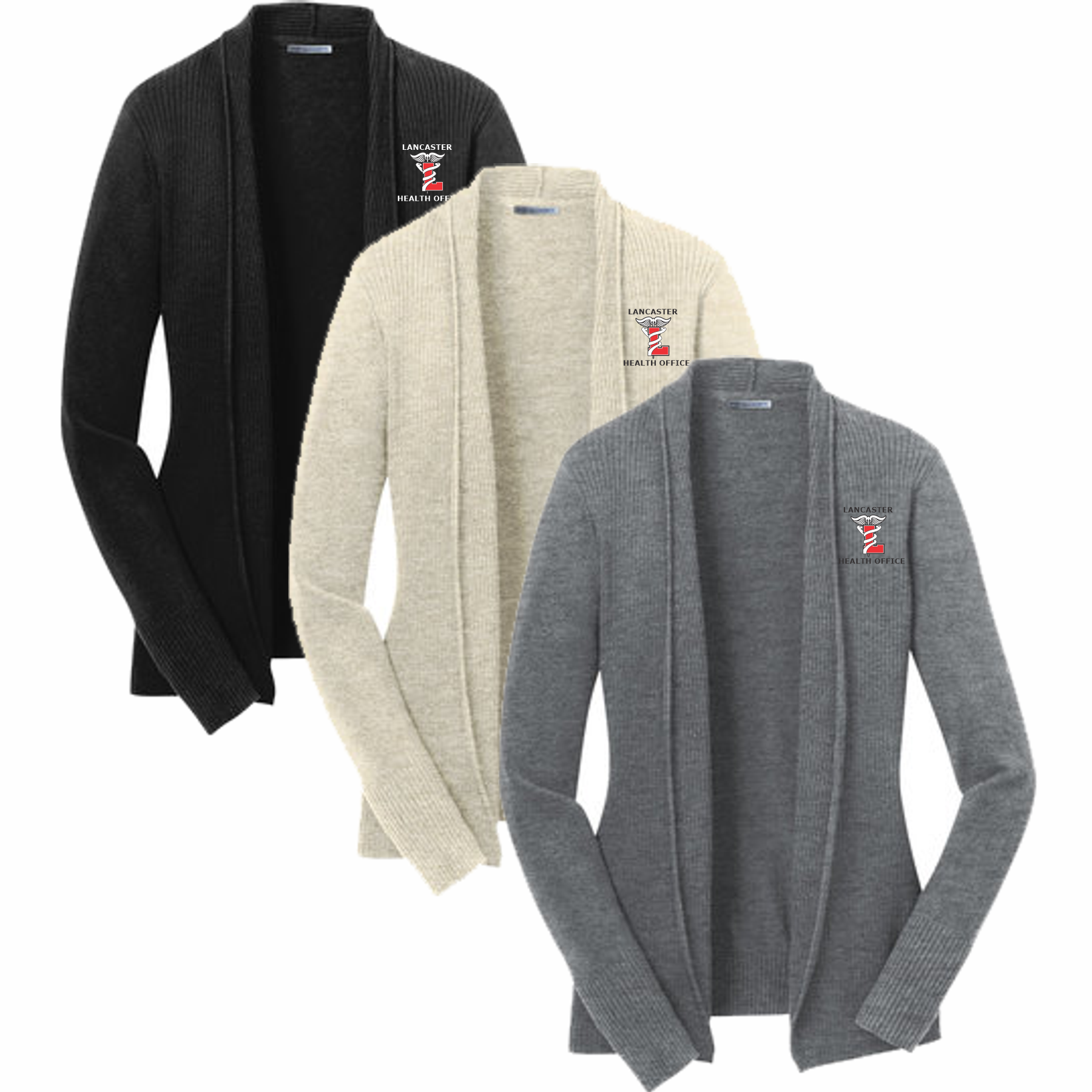 60/40 cotton/nylon rib knit open front cardigan — embroidered logo left chest