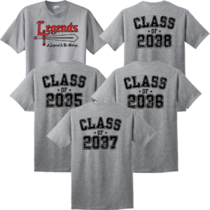 ANY GRAD YEAR IS WELCOME — embroidered on right sleeve on: crewneck sweatshirt, hoodie, or anorak ONLY