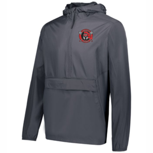 100% Softex™ polyester, wind & water-resistant, packs into its own front pouch pocket with zipper closure and self-fabric loop for easy packing on the go — embroidered logo left chest and full back