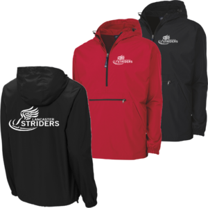 100% Softex™ polyester, wind & water-resistant, packs into its own front pouch pocket with zipper closure and self-fabric loop for easy packing on the go — embroidered logo left chest and full back